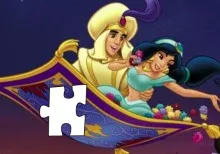 Aladdin y Jasmine vuelan con su alfombra mágica por encima del reino. Reconstruye el puzzle poco a poco hasta que reconstruyas la imagen completa.