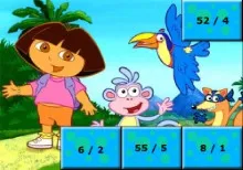 Resuelve divisiones con Dora y descubre una imagen oculta. Arrastra los números correctos a las casillas con el ratón y diviértete aprendiendo.